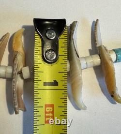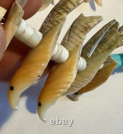 Old Style Hand Carved Fetish Birds at 1.25 long with Split Tails - 2 have minor flaws (1 side of tail chipped), not detracting from the overall beauty of the necklace. Measurements: The necklace measures 30 inches end to end + 2.5 Jacla. This is an 18 Drop when measured flat. Please refer to photos for exact dimensions.