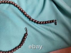 The necklace is made of turquoise and sterling silver, with a ball/bead chain type. The necklace is a high quality piece with no magnetic field so the silver is high grade.