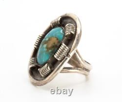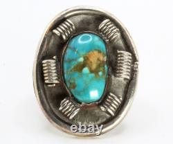 The sterling silver old pawn ring boasts an oval-shaped turquoise stone, set on a sterling silver base with distinctive framing details that enhance its unique charm. Evidence of a historical crack in the stone, now laminated, adds character and a sense of history to the piece. Weighing 14.6 grams and sized at 7, the face of the ring measures 1 1/8 inches long by 1 1/8 inches wide, creating a wearable and culturally rich testament to Native American craftsmanship. If you have any issue with the item upon receiving, please let us know immediately. We believed that there is nothing we cannot resolve in a good communication.