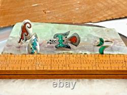 This lot includes two vintage Native American pieces by Early Thomas Singer, featuring natural turquoise stones set in sterling silver. The asymmetrical oval-shaped stones are bezel-set in the pieces, which are signed by the artist. These handmade pieces are from the Navajo tribe and were crafted in the United States. The silver and turquoise colors add a unique and traditional touch to the jewelry, making it a valuable and collectible addition to any collection.
