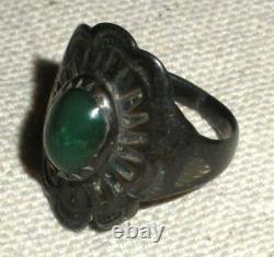 VINTAGE NAVAJO GREEN TURQUOISE EARLY STAMPWORK STERLING SILVER RING SIZE 6 vafo
