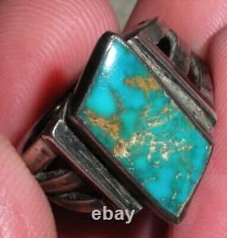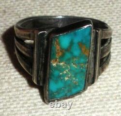 BAGUE EN ARGENT STERLING AVEC TURQUOISE BLEU GREAT NAVAJO VINTAGE TAILLE 7 1/4 vafo