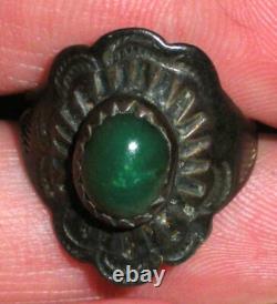 BAGUE EN ARGENT STERLING AVEC TURQUOISE VERTE NAVAJO ANCIENNE EN MÉTHODE DE TAMPOGRAPHIE TAILLE 6 vafo