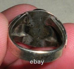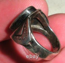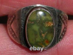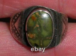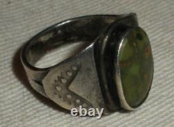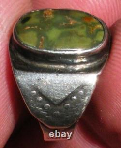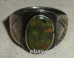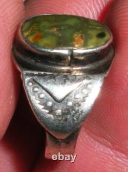 BAGUE EN ARGENT STERLING AVEC TURQUOISE VERTE NAVAJO ANCIENNE VINTAGE TAILLE 5. 9/16 POUCES DE LARGE AU POINT LE PLUS LARGE.