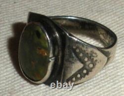 BAGUE EN ARGENT STERLING VINTAGE DES ANNEES 70 EN TURQUOISE VERTE NAVAJO TAILLE 5 BELLES TAMPOGRAPHIES vafo