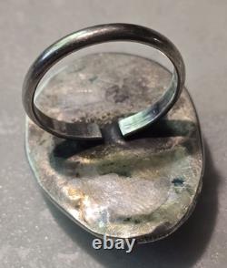 La pierre n'est ni ébréchée ni fissurée. L'argent n'est pas tordu et ne montre aucune corrosion. Cependant, elle n'est pas parfaitement ovale, car c'est l'une de ses toutes premières pièces.La taille du dessus de la bague elle-même est d'environ 1,12 mm de longueur et environ. Les photos font partie de la description. Les photos ne sont pas retouchées de quelque manière que ce soit et ont été prises à la lumière naturelle.
