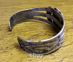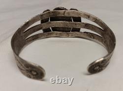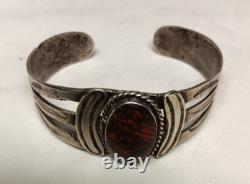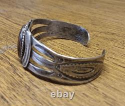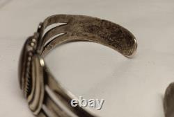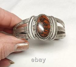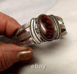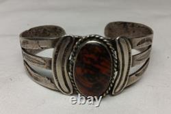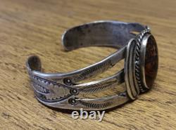 Bracelet en argent ingot navajo ancien avec bois pétrifié