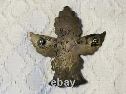 Disponible, ce magnifique badge en argent sterling Zuni incrusté de Knifewing datant des débuts mesure près de 3 pouces de hauteur. L'incrustation est exceptionnelle sur ce magnifique bijou Zuni Knifewing de taille complète parfaitement incrusté. On ne voit tout simplement plus de pièces fabriquées comme celle-ci. Non signé, comme toutes les premières œuvres maîtresses Zuni.