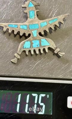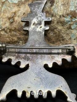 Pour ceux d'entre vous qui connaissent le travail de Dios, les photos expliqueront tout. C'est une pièce vraiment spéciale car cette broche en design Dios Knifewing est généralement fabriquée avec de l'incrustation de corail. C'est la première fois que je tombe sur un modèle avec incrustation de turquoise. J'ai ajouté de nombreuses photos pour que vous puissiez voir, y compris des mesures supplémentaires et le poids. Consultez également les photos pour l'état.